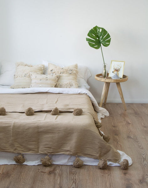 Our beautiful Pom Pom blankets are hand loomed in using traditional wooden looms in a tradition that is inherited from generation to generation. These blankets are a perfect addition to your bedroom. they can add an additional of warmth during the winter months but are cool enough to be used during the summer too. The blankets can also be used as a thrown in your living room on top of your sofa.